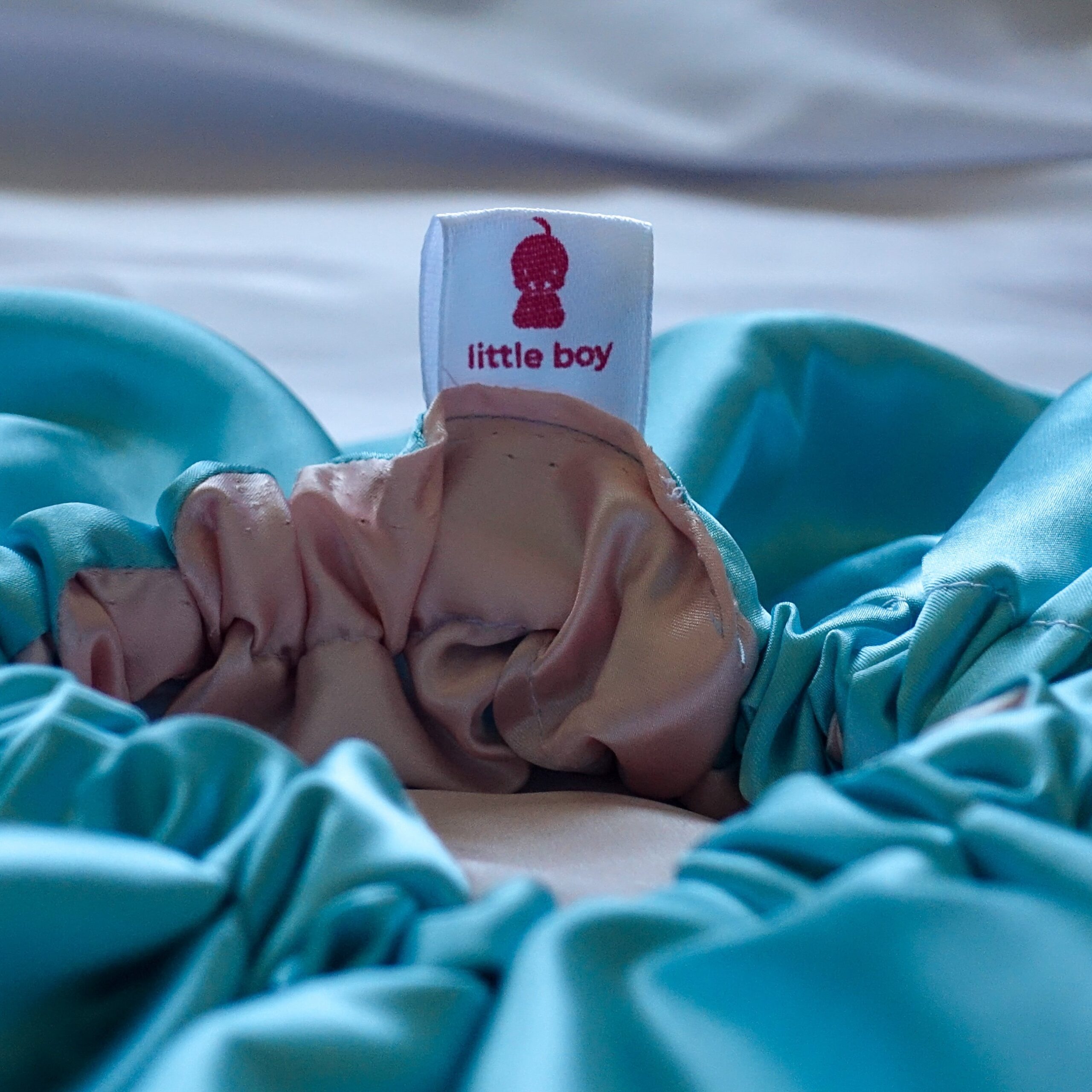 bonnet en satin doublé bleu et rose tres doux pour les cheveux